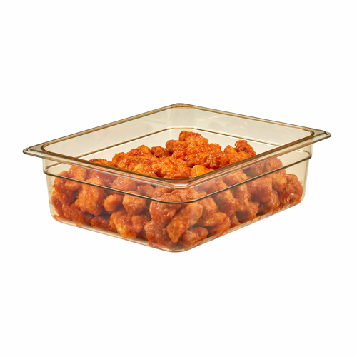 H-Pan High Heat Hot Food Pan, 1/2 size, 4” deep, hi-temp plastic, -40F to 375F, non-stick surface, won’t bend or dent, amber, NSF, Made in USA