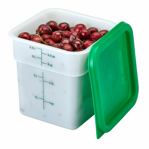CamSquare Food Container, 4 qt., 7-1/4”L x 7-1/4”W x 7-3/8”H, green graduation, polyethylene, dishwasher safe, resists stains & odors, natural white, NSF, Made in USA