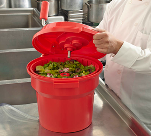 Chef-Master Salad Dryer, 2.5 gallon, spins clockwise & counter-clockwise, built-in brake, finger grip, side handles, sealed gearbox, aluminum crank shaft, plastic, FDA approved, ETL