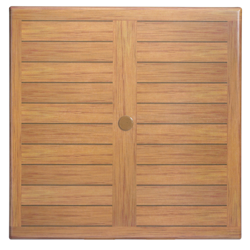Acadia Classic Stacking Dining Armchair, designed for outdoor use, contoured seat & ladder back, Rexform UV resistant resin, textured wood grain with satin finish, 2”x 2” legs with footpads, teakwood, Made in USA (priced per each, packed 12 each per case)