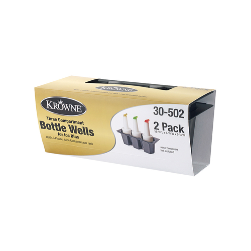 Krowne (2) Three Compartment Bottle Wells for Ice Bins, ABS plastic, black (accommodates standard bottles)