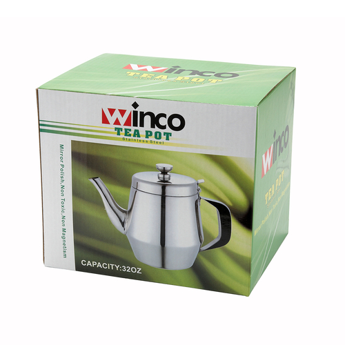Teapot, 32 oz., gooseneck, hinged top, handle, stainless steel, mirror finish (Qty Break = 12 each)
